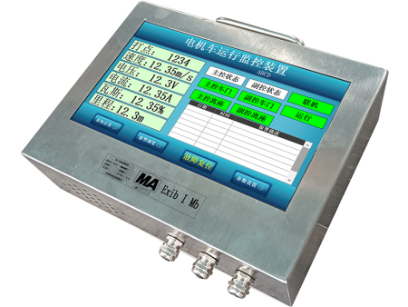 PH12矿用本安型显示屏是我公司根据《煤矿安 全规程》和现场实际情况开发研制。通过R.J45 网线与主机设备相连接。具有丰富的组态扩展功能,能够根据客户的不同使用要求进行画而及控制功能组态,采用触摸控制操作,操作简单便捷。